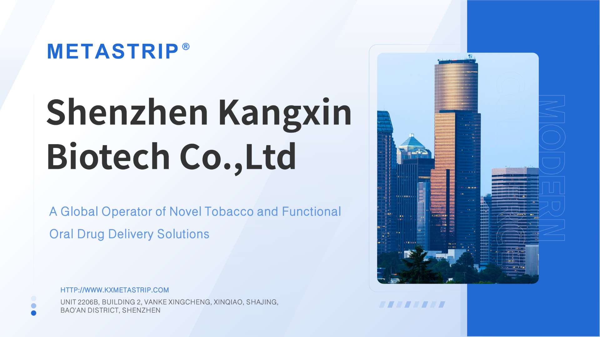 exclusive market operation and sales of the metastrip series, including nicotine oral films, gum, and Oral tobacco products. We leverage innovative oral delivery system technology and patented production processes to significantly enhance the efficacy and stability of innovative oral film ingredients, delivering a more pleasant and efficient product experience and providing a healthier lifestyle choice.